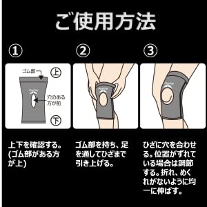 2.ゴム部を持ち、足を通してひざまで引き上げる。