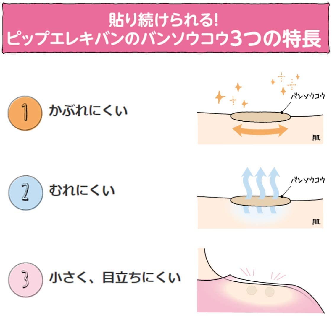 ●小さく、目立ちにくい肌なじみのよい色合いで、貼っても目立ちにくい。