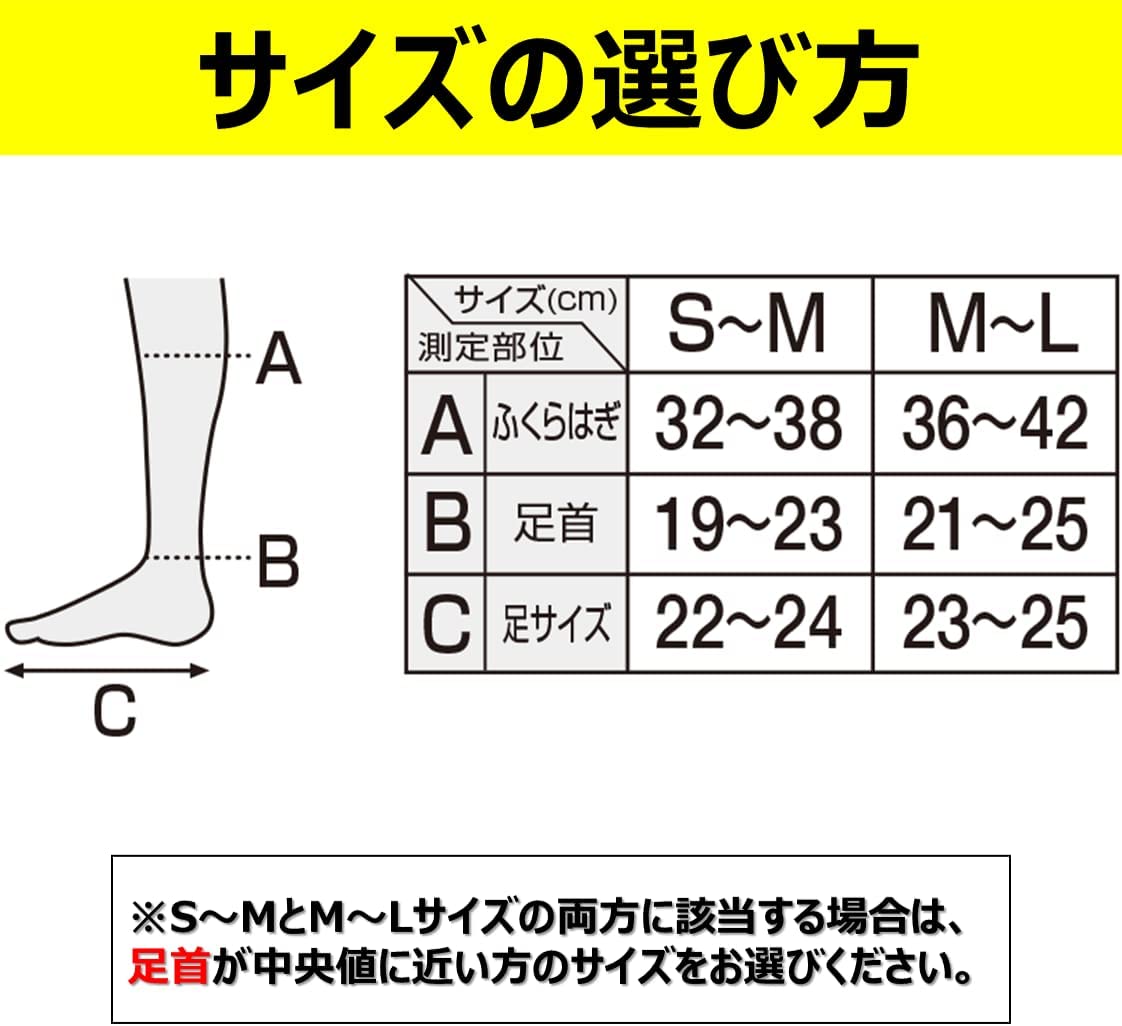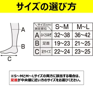 S~MとM~Lサイズの両方に該当する場合は、足首が中央値に近い方のサイズをお選びください。