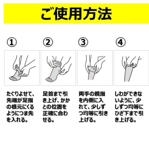 やぶれ、伝線を防ぐためにご使用前に、手足のつめやかかとをなめらかにし、指輪などをはずしてください。つめを立てたり、一気に引き上げないでください。