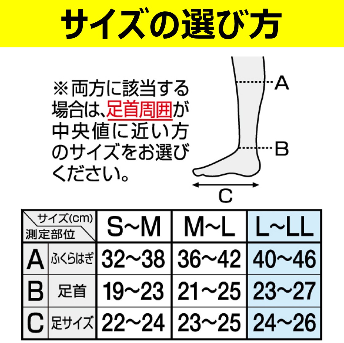 複数のサイズに該当する場合は、足首周囲が中央値に近い方のサイズをお選びください。