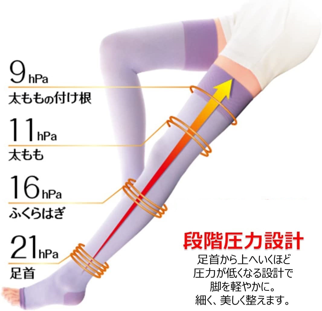 4段階圧力設計で太ももの付け根まで翌朝スッキリ美脚。脚をしっかり引きしめたい方、より強い引きしめ感を求めている方に。