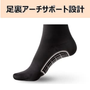 ・「足裏アーチサポート設計」。ギュッとひきしめるハード編み採用。