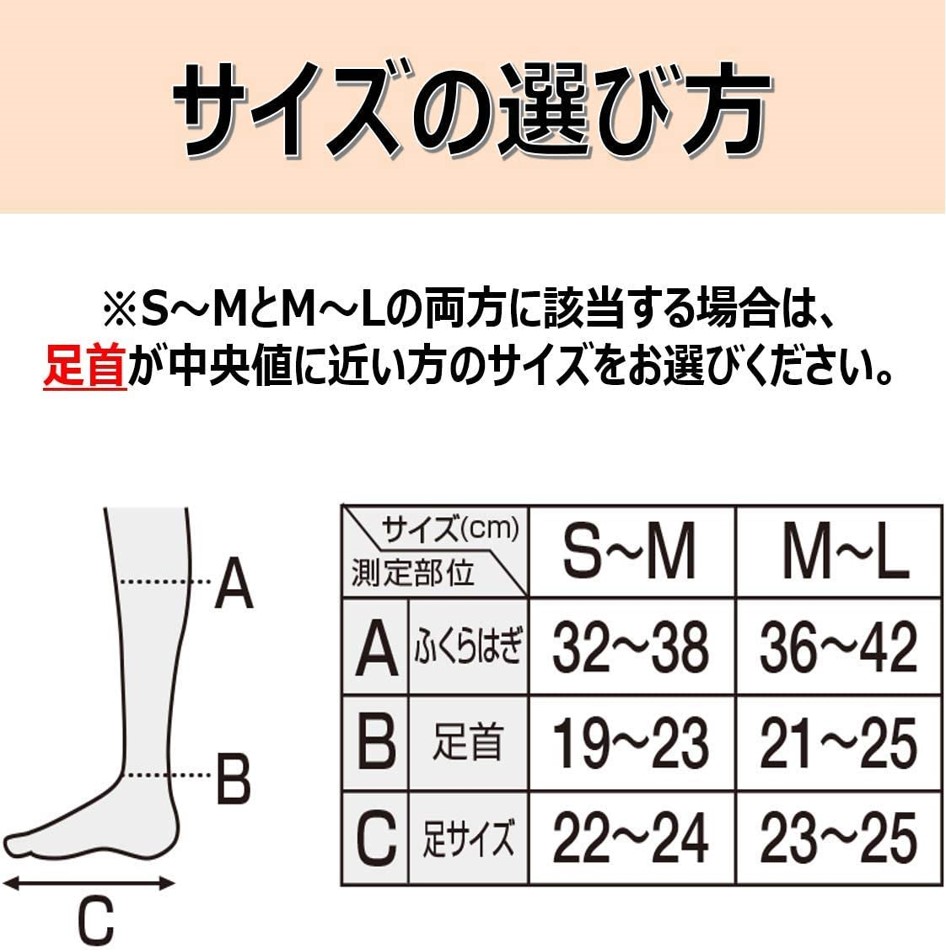 SMサイズとMLサイズの両方に該当する場合は足首周囲が各サイズの中央値に近い方のサイズをお選びください。