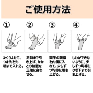 ご使用方法 やぶれ、伝線を防ぐためにご使用前に、手足のつめやかかとをなめらかにし、指輪などをはずしてください。つめを立てたり、一気に引き上げないでください。