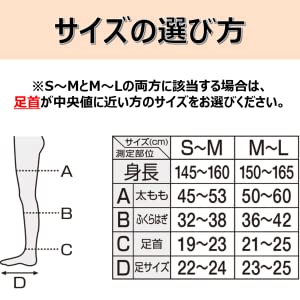S~MとM~Lサイズの両方に該当する場合は、足首が中央値に近い方のサイズをお選びください。