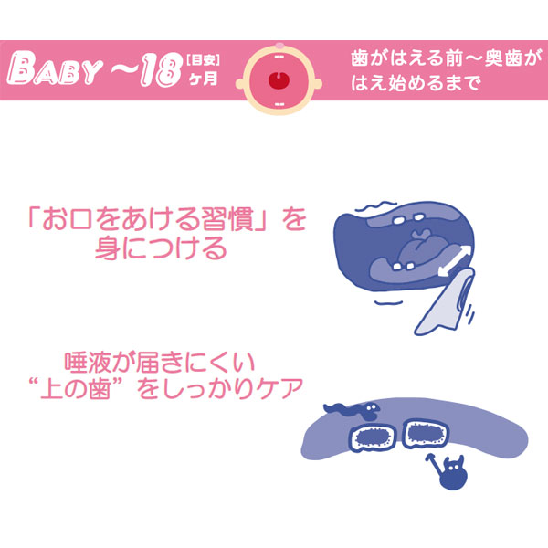 「はみがき先生」はお子様の月齢別に正しいオーラルケアを身につけられるよう開発されました。
