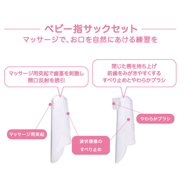 下ほほの内側の歯肉をマッサージ用の指サックで前後に優しくマッサージすると、「開口反射」が誘発されます。