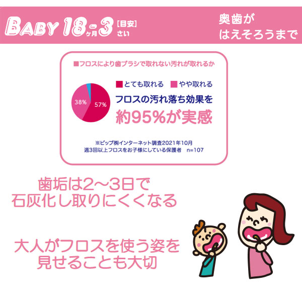 ・大人がフロスを使うことでお子さまも興味を示すので使用してる姿を見せるのも大切