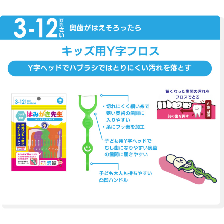 対象:3~12歳(目安)/使用時期目安:奥歯がはえそろってきたら