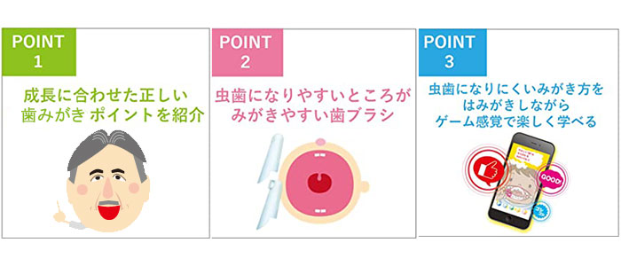 「はみがき先生」はお子様の月齢別に正しいオーラルケアを身につけられるよう開発されました。