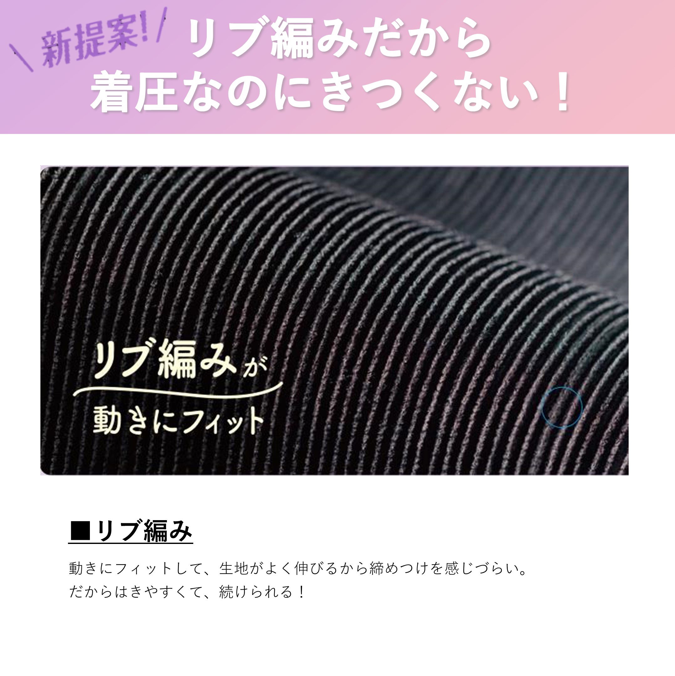 リブ編みが動きにフィットして、生地が良く伸びるから締めつけを感じづらい。だからはきやすくて、続けられる!