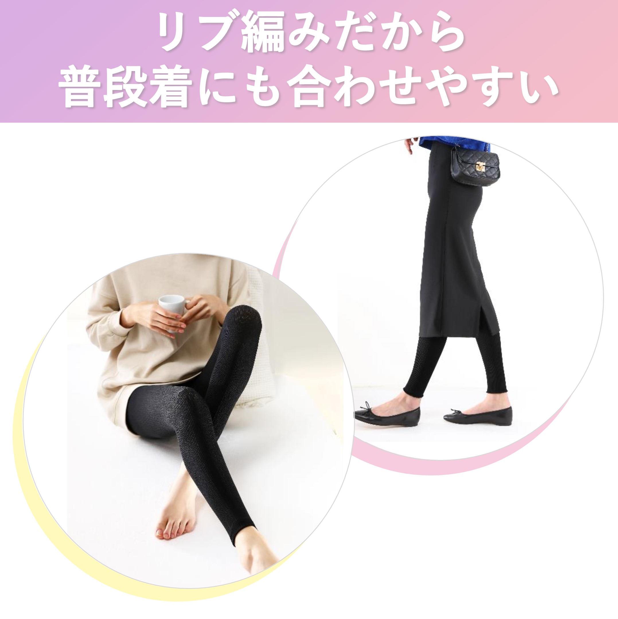 日常で使いやすいリブ編みで、キツくないのにしっかりケア!おでかけにもコーディネートしやすく、外出にも使えます。キツくないからパジャマとしての使用にも。