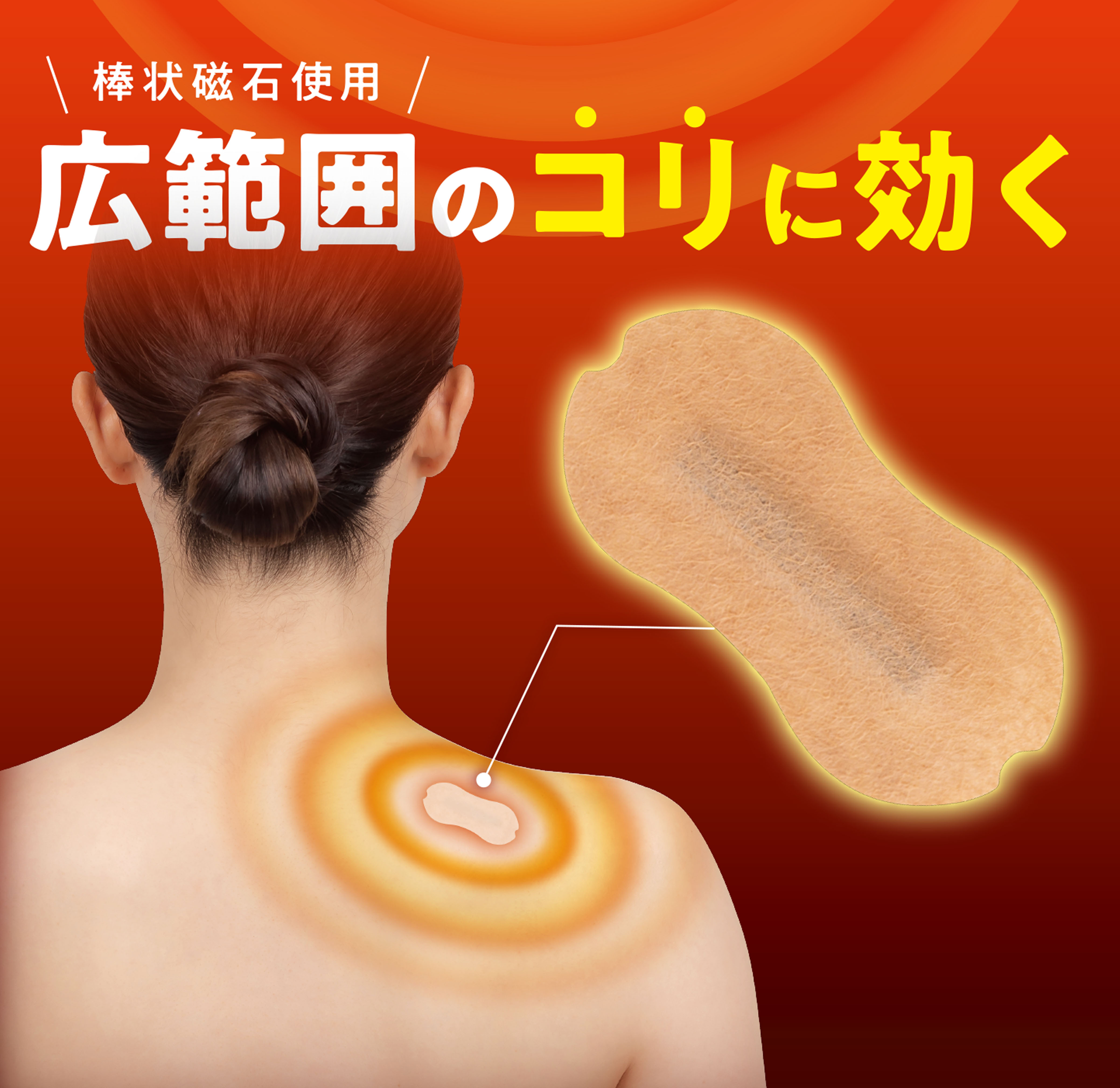 肩こり・腰のこりなど、気になるコリを磁気のチカラで改善します。においもなく、目立ちにくいので日中も使用しやすいコリケアグッズです。