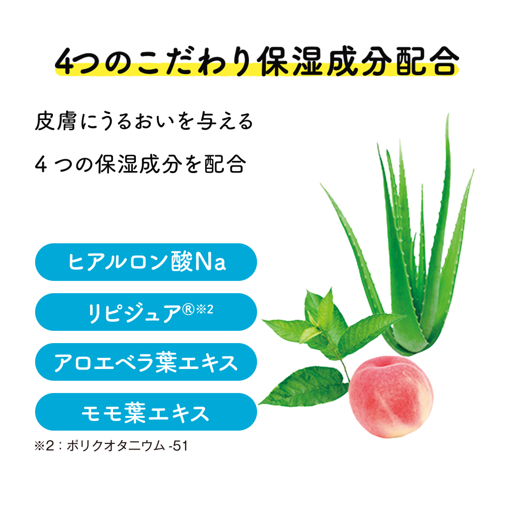 皮膚にうるおいを与える4つの保湿成分配合。