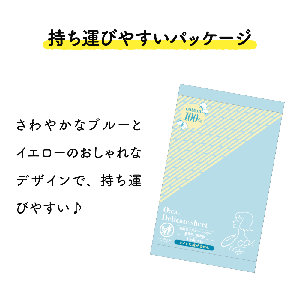コットンは水に溶けないため、トイレには流せませんが、デリケートなお肌へのやさしさにこだわり素材を選びました。