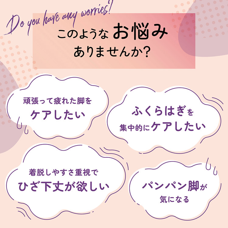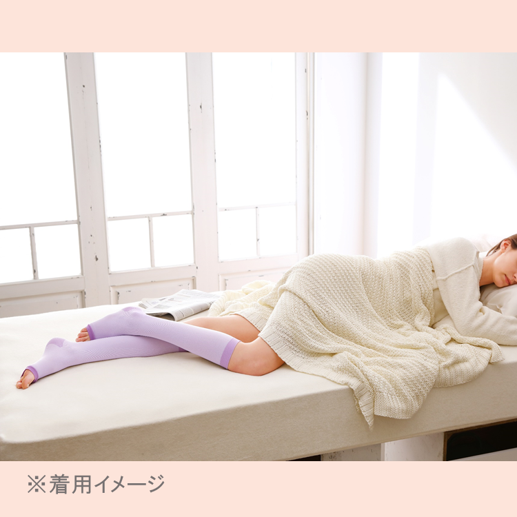 寝ている間やおうち時間で美脚ケア! 夜用ソックスやルームウェアなど、ライフスタイルに合わせた着圧ウェアをご用意。