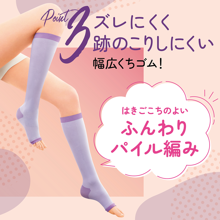 足首から上へいくほど圧力が低くなる設計で、脚を細く、美しく整えます。