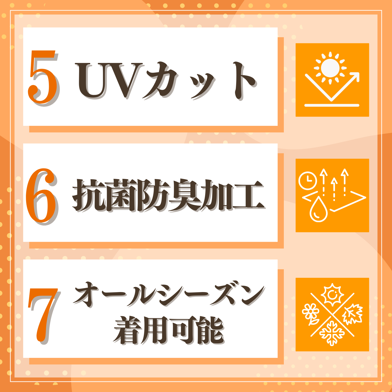 UVカット・抗菌防臭加工・オールシーズン着用可能など、他にもゴルフを楽しむ方に嬉しい機能たくさん!